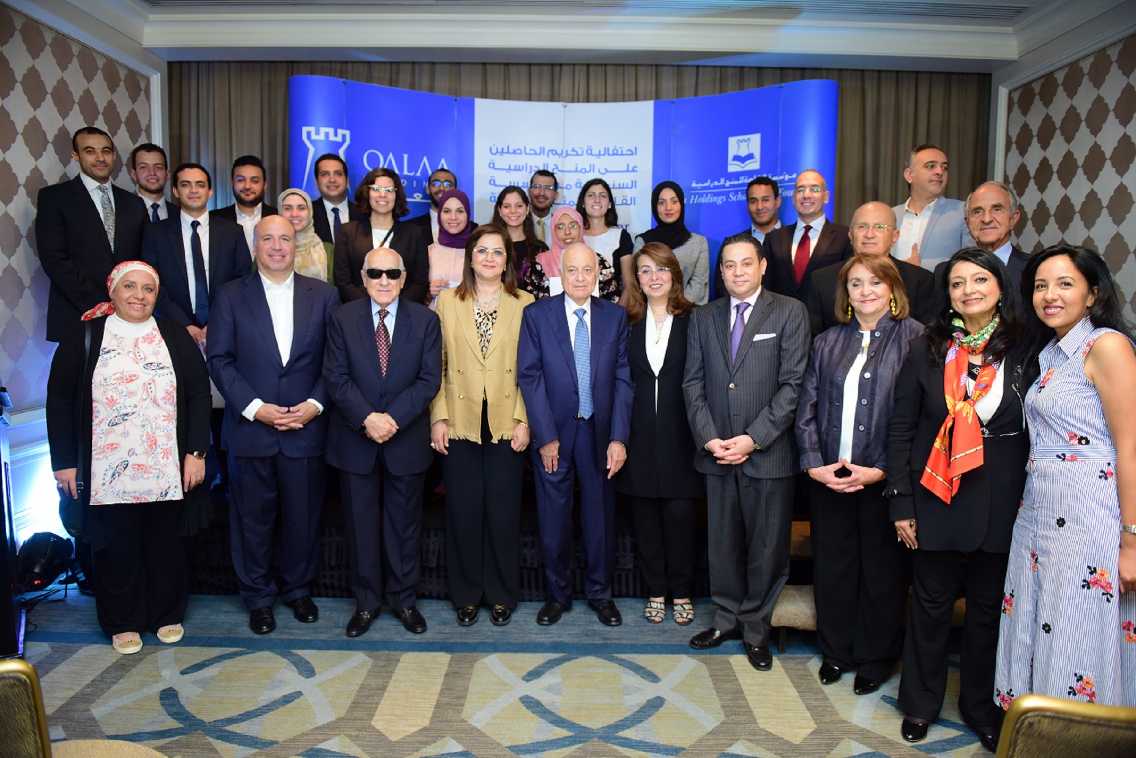 A group photo to mark the occasion when Qalaa announced the award of scholarships which include universities in the United States, United Kingdom, Sweden, Germany, Italy and Spain.